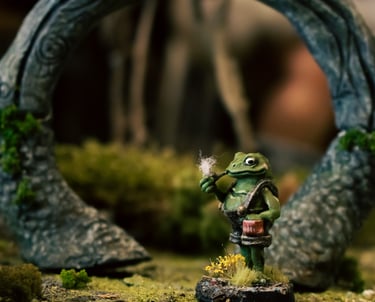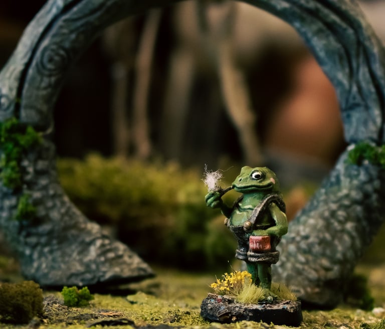 At long last, you have arrived in the Hazelands. As you wandered through the mist, you stumbled upon a door hidden within an ancient oak tree. Stepping through, you were serenaded by mushrooms humming your name. A courteous frog, basking in the sun on an especially soft rock, greeted you like an old friend. This polite frog, known for his sage advice and questionable rock cakes—though if you favour the taste of flies, they might appeal to you— will cross your path again.