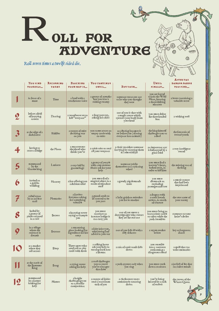 A 7D12 random roller table to throw you headfirst into an